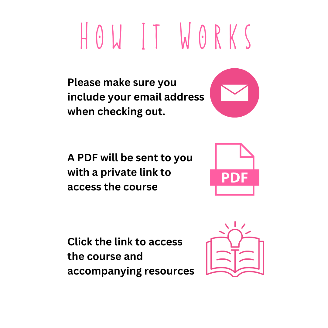 Course link will be sent via email. Please ensure you include your email address when checking out.